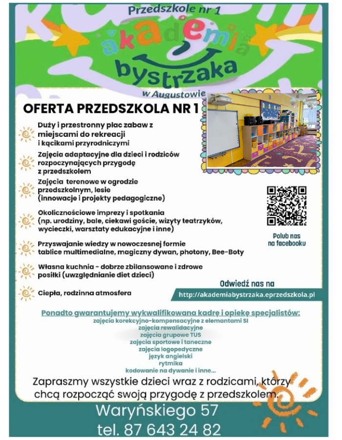 Oferta edukacyjna: Przedszkole Nr 1 im. Akademia Bystrzaka w Augustowie
